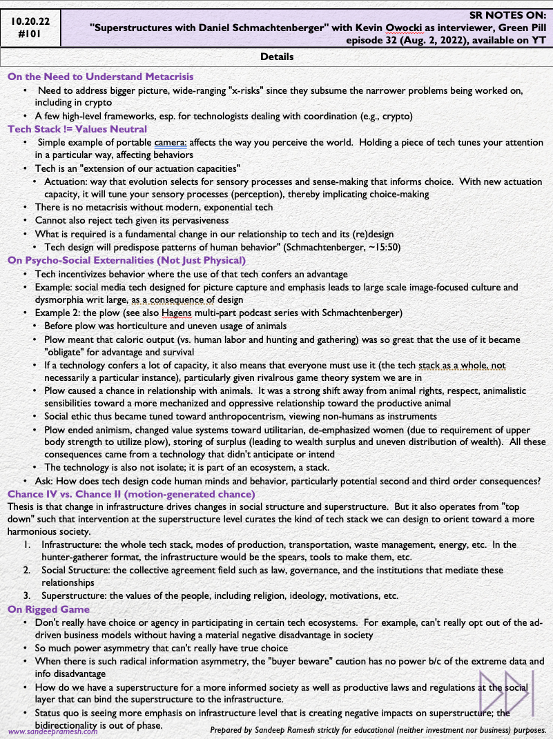 Source: "Superstructures with Daniel Schmactenberger" with Kevin Owocki as interviewer, Green Pill episode 32 (Aug. 2, 2022), available on YT.