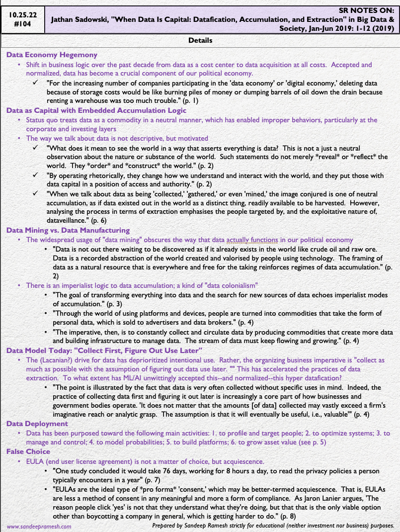 Source: Jathan Sadowski, "When Data Is Capital: Datafication, Accumulation, and Extraction" in Big Data & Society, Jan-Jun 2019: 1-12 (2019)