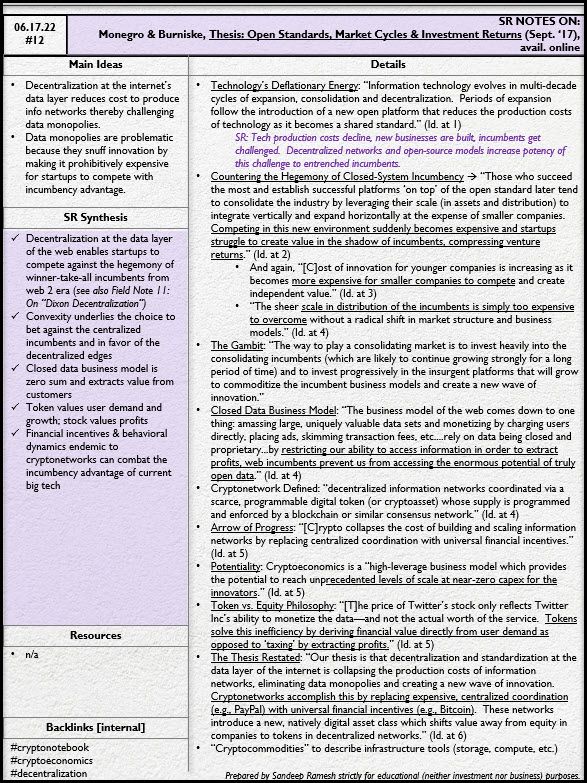 - Decentralization at the data layer of the web enables startups to compete against the hegemony of winner-take-all incumbents from web 2 era (see also Field Note 11: On “Dixon Decentralization”)