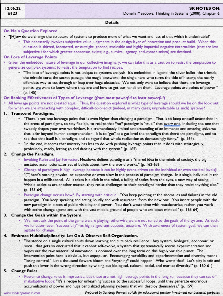 Meadows goes on to expound upon varying types of leverage points. Twelve to be precise.