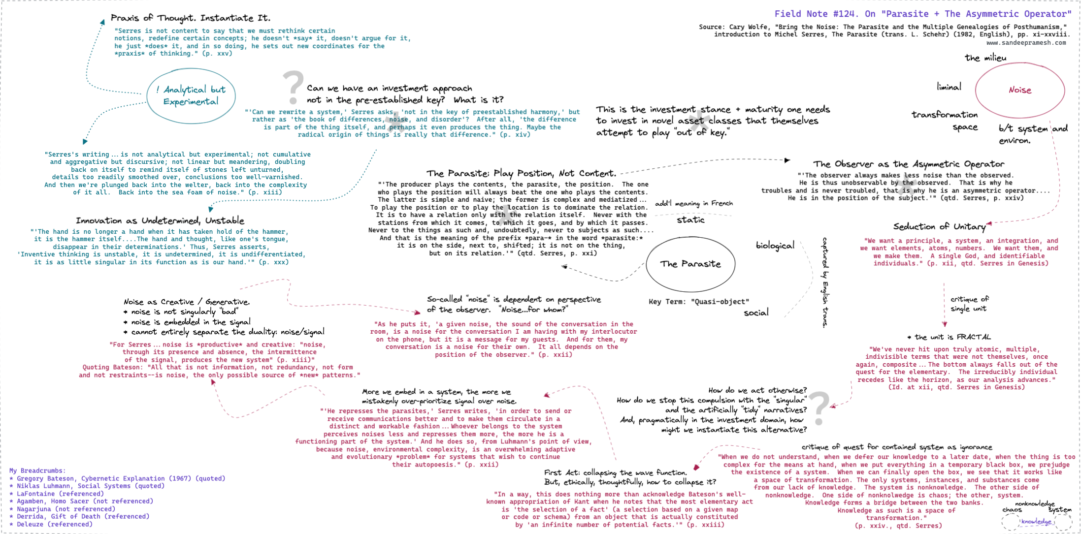 Source: Cary Wolfe, "Bring the Noise: The Parasite and the Multiple Genealogies of Posthumanism," introduction to Michel Serres, The Parasite (trans. L. Schehr) (1982, English), pp. xi-xxviii.