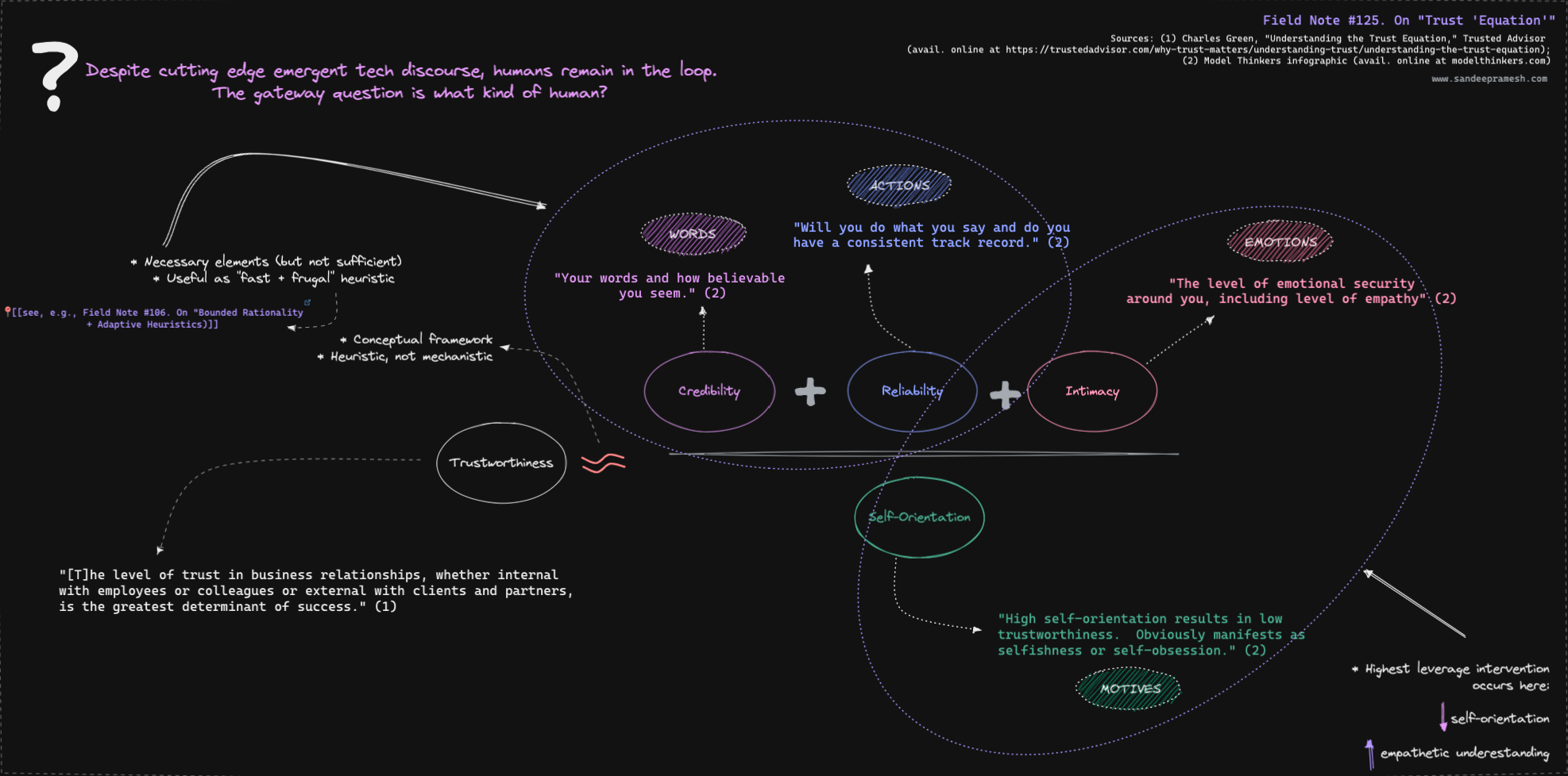 (1) Charles Green, "Understanding the Trust Equation," Trusted Advisor, avail. online; (2) Model Thinkers, "Trust Equation," avail. online.
