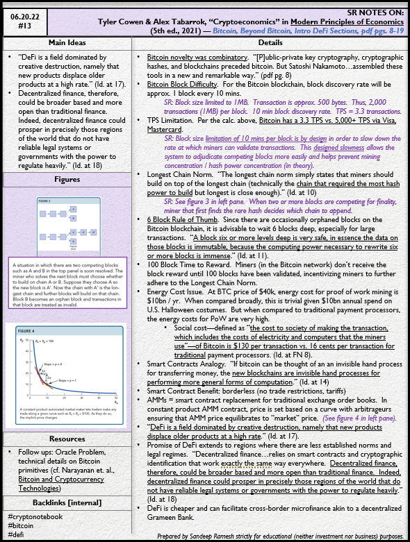 Source: Tyler Cowen & Alex Tabarrok, “Cryptoeconomics” in Modern Principles of Economics (5th ed., 2021) — Bitcoin, Beyond Bitcoin, Intro DeFi Sections, pdf pgs. 8-19.