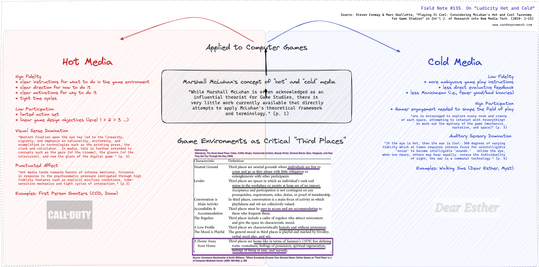 As an introspective prompt, I return to the question at the top: what game are you playing? One might query how McLuhan's hot and cold spectrum applies to the game of their own life.