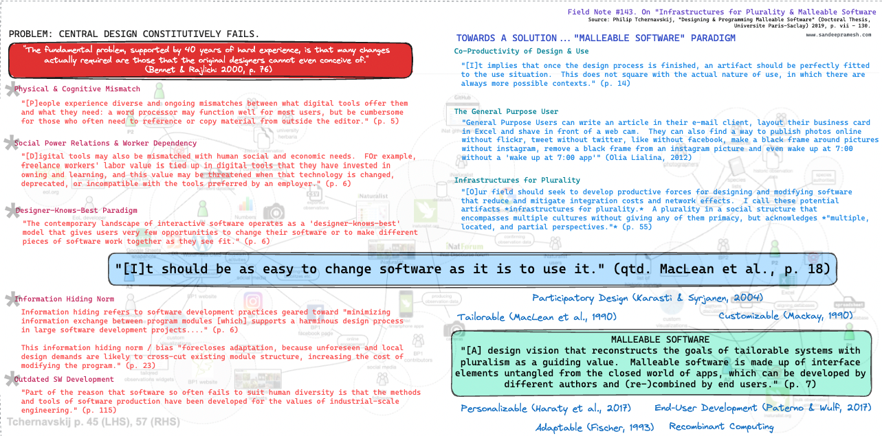 A deft AI/ML entrepreneur with pro-social vision underpinned by a refreshing participatory anti-technocratic ethos kindly left me a breadcrumb pertaining to the evolution of software design. I picked up the breadcrumb and went looking for a loaf. I found one in Tchernavskij's 2019 doctoral thesis, titled "Designing & Programming Malleable Software."