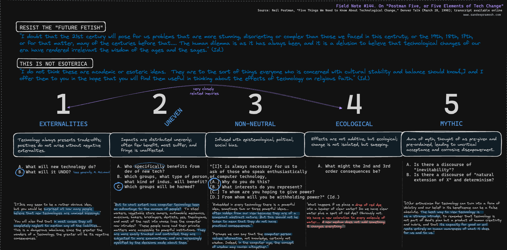 Source: Neil Postman, "Five Things We Need to Know About Technological Change," Denver Talk (March 28, 1998); transcript available online.
