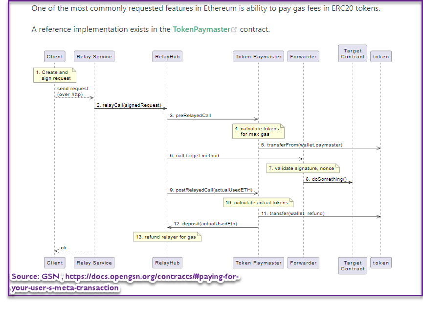 Source: Istvan Andras Seres, “On Blockchain Metatransactions” in IEEE Int’l Conference on Blockchain (2020) & Gas Station Network (“GSN”) Documentation avail. online.