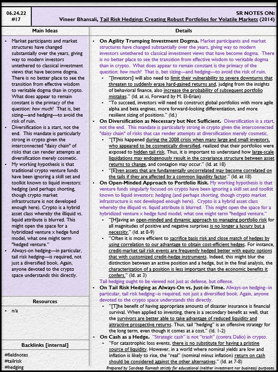 - My working hypothesis is that traditional crypto venture funds have been ignoring a skill set and toolkit known to liquid investors: hedging (and perhaps shorting, though crypto market infrastructure is not developed enough here).