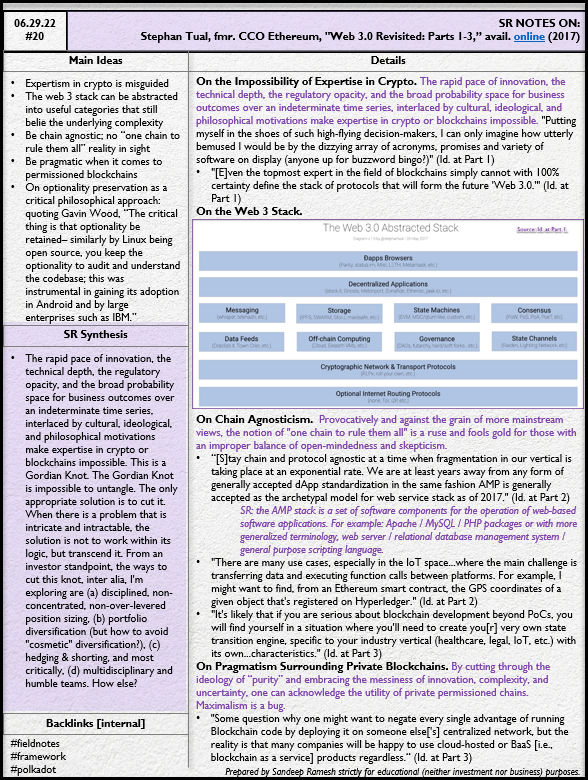 RE: the last bullet. The rapid pace of innovation, the technical depth, the regulatory opacity, and the broad probability space for business outcomes over an indeterminate time series, interlaced by cultural, ideological, and philosophical motivations make expertise in crypto or blockchains impossible. This is a Gordian Knot. The Gordian Knot is impossible to untangle. The only appropriate solution is to cut it. When there is a problem that is intricate and intractable, the solution is not to work within its logic, but transcend it. From an investor standpoint, the ways to (start to) cut this knot, inter alia, I'm exploring are (a) disciplined, non-concentrated, non-over-levered position sizing, (b) portfolio diversification (but how to avoid "cosmetic" diversification?), (c) hedging & shorting, and most critically, (d) multidisciplinary and humble teams. How else?