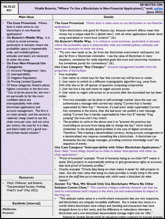 Source: Vitalik Buterin, "Where To Use a Blockchain in Non-Financial Applications?," avail. online (June 2022)