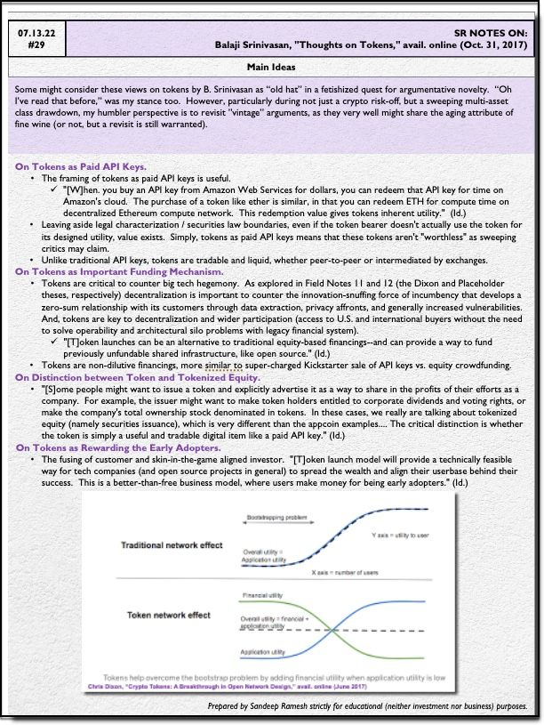 Some might consider these views on tokens by B. Srinivasan as “old hat” in a fetishized quest for argumentative novelty. “Oh I’ve read that before,” was my stance too. However, particularly during not just a crypto risk-off, but a sweeping multi-asset class drawdown, my humbler perspective is to revisit “vintage” arguments, as they very well might share the aging attribute of fine wine (or not, but a revisit is still warranted).