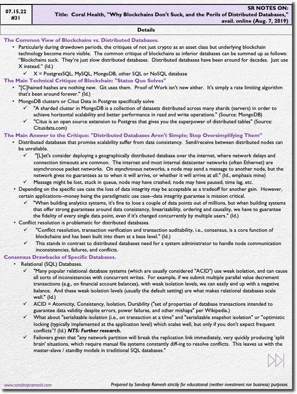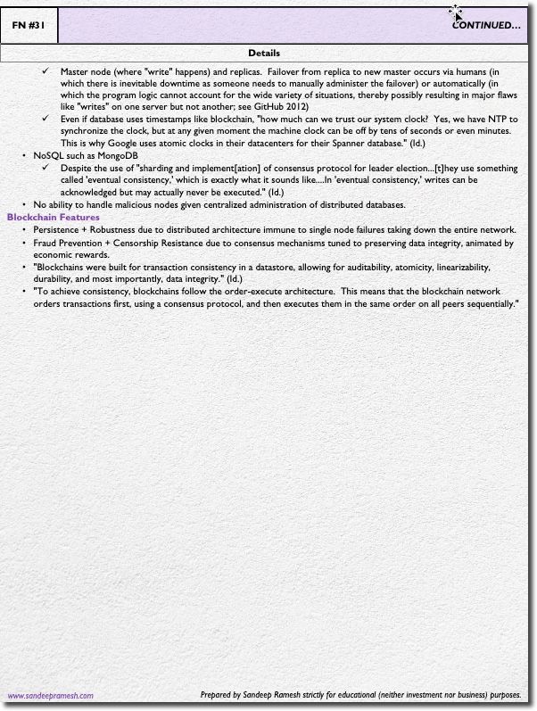 "Don’t just use a blockchain because it’s the cool thing to do... more importantly, don’t just use a distributed database because it’s the cooler thing to do." (Id.). See also Field Note 28 (On "Blockchain, not Slow Database").