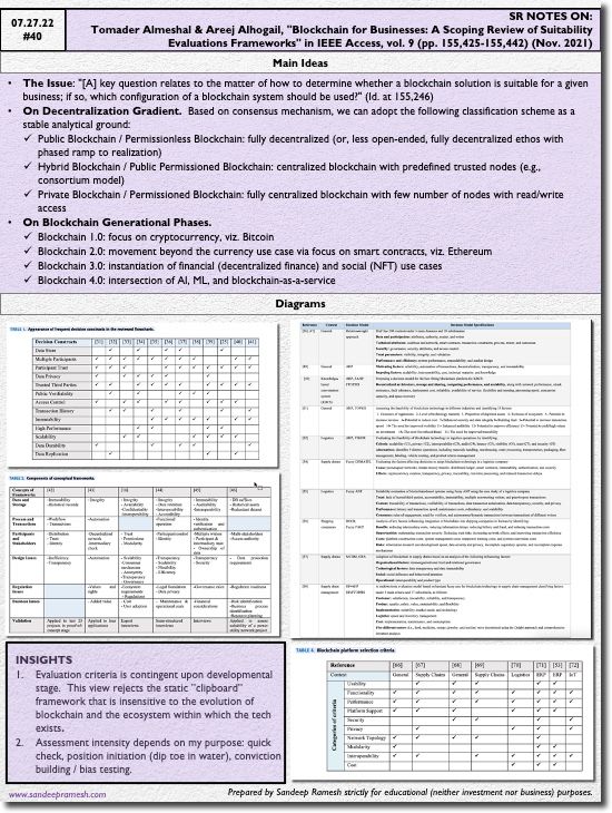 Source: Tomader Almeshal & Areej Alhogail, "Blockchain for Businesses: A Scoping Review of Suitability Evaluations Frameworks" in IEEE Access, vol. 9 (pp. 155,425-155,442) (Nov. 2021)