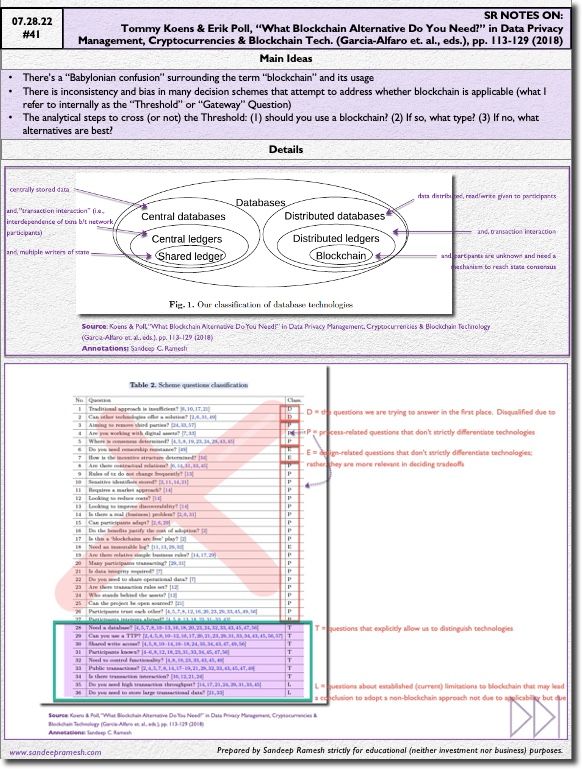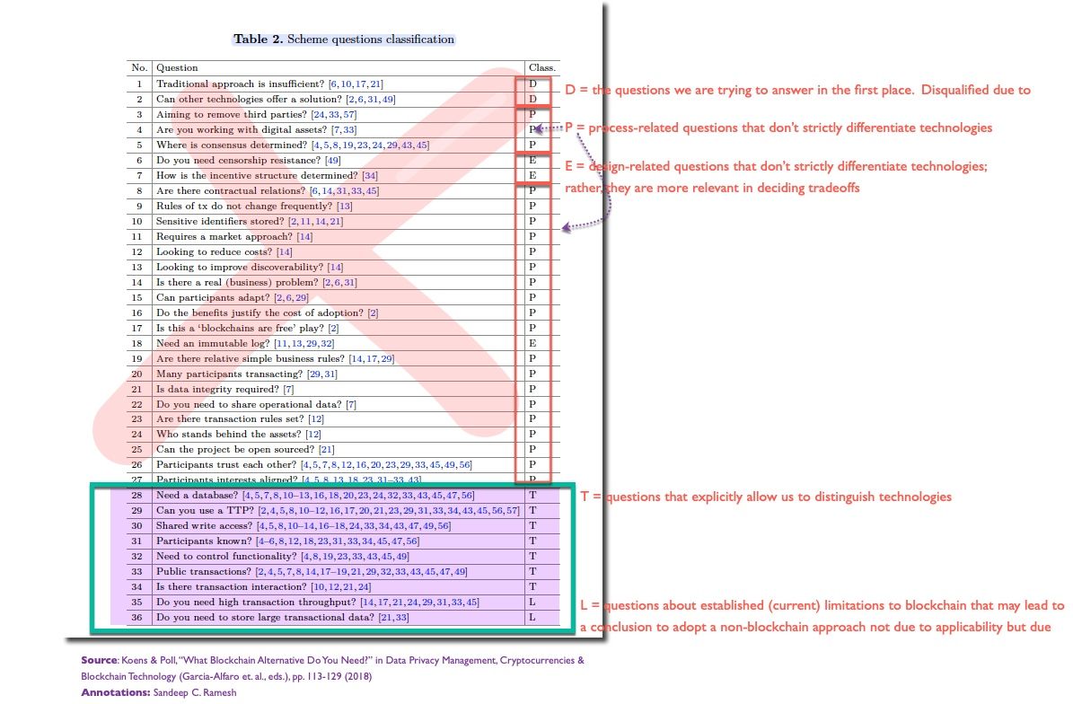 - There is inconsistency and bias in many decision schemes that attempt to address whether blockchain is applicable (what I refer to internally as the “Threshold” or “Gateway” Question; see Field Note #38 and Field Note #40)