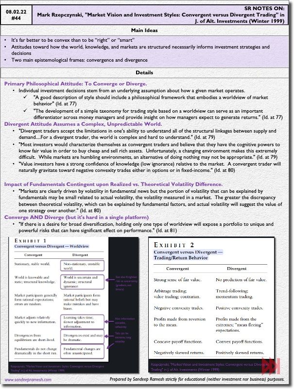 Source: Mark Rzepczynski, "Market Vision and Investment Styles: Convergent versus Divergent Trading" in J. of Alt. Investments (Winter 1999)