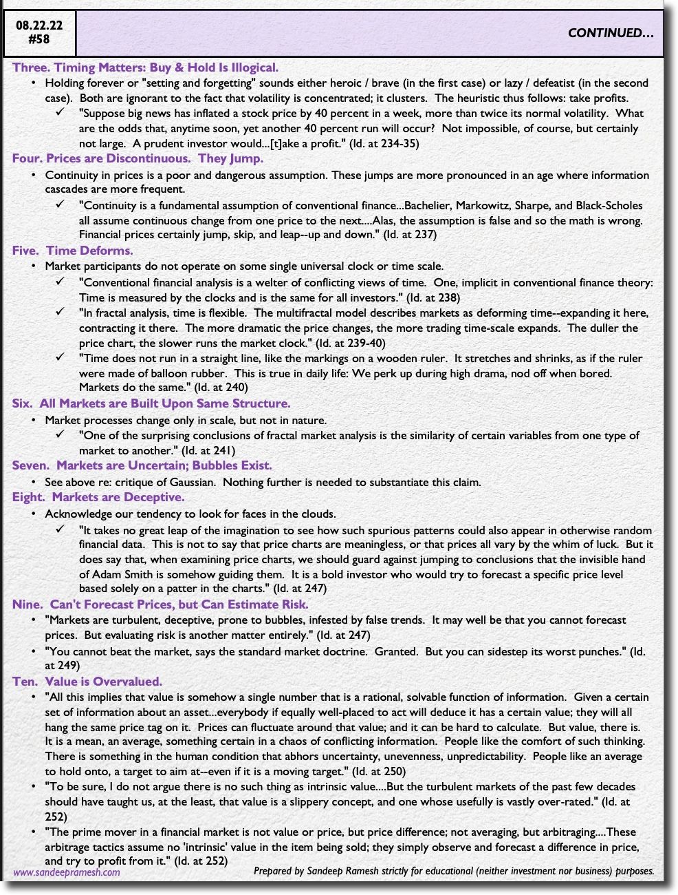 - Value Is Overvalued. "To be sure, I do not argue there is no such thing as intrinsic value....But the turbulent markets of the past few decades should have taught us, at the least, that value is a slippery concept, and one whose usefully is vastly over-rated." (Id. at 252)