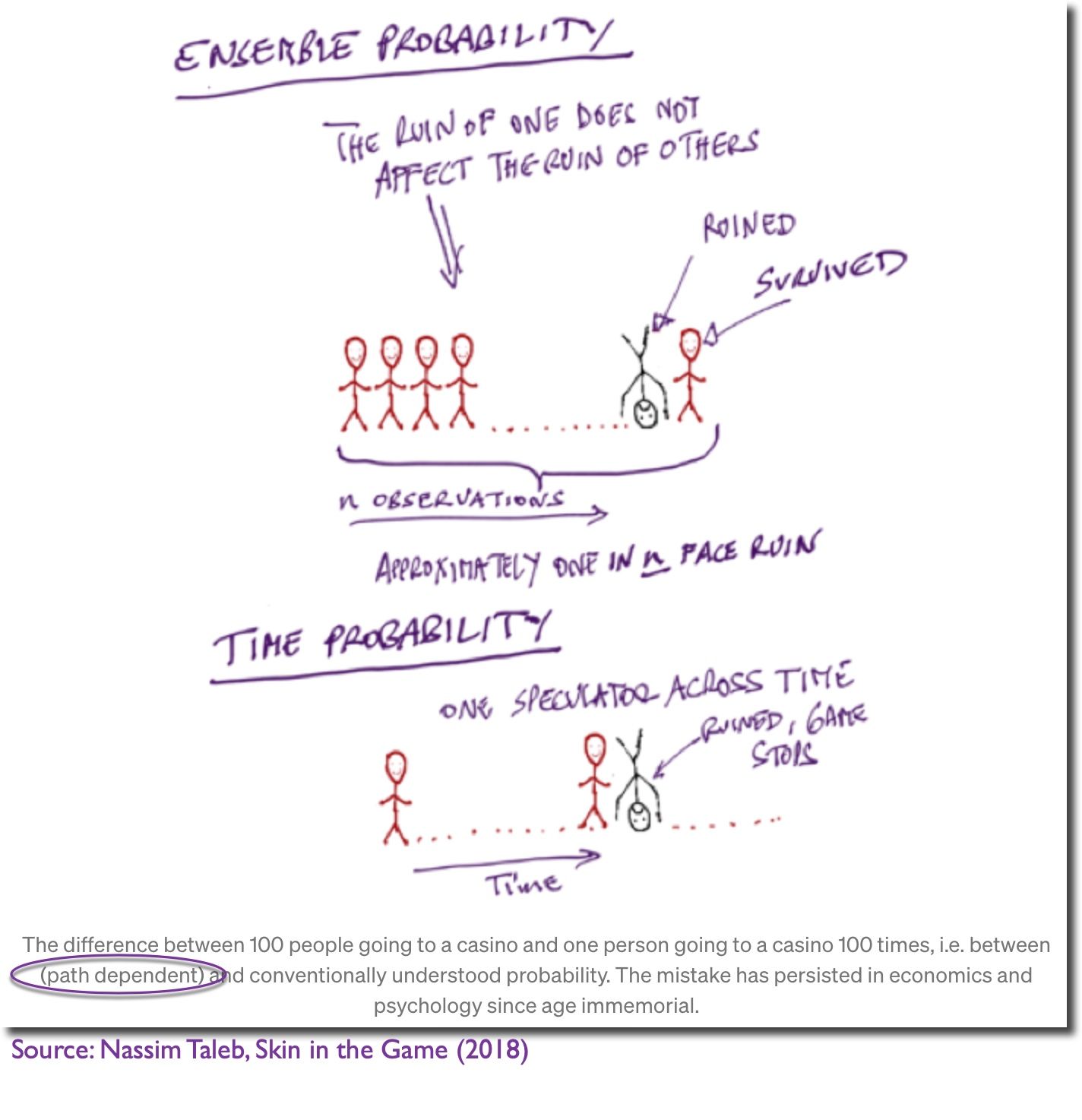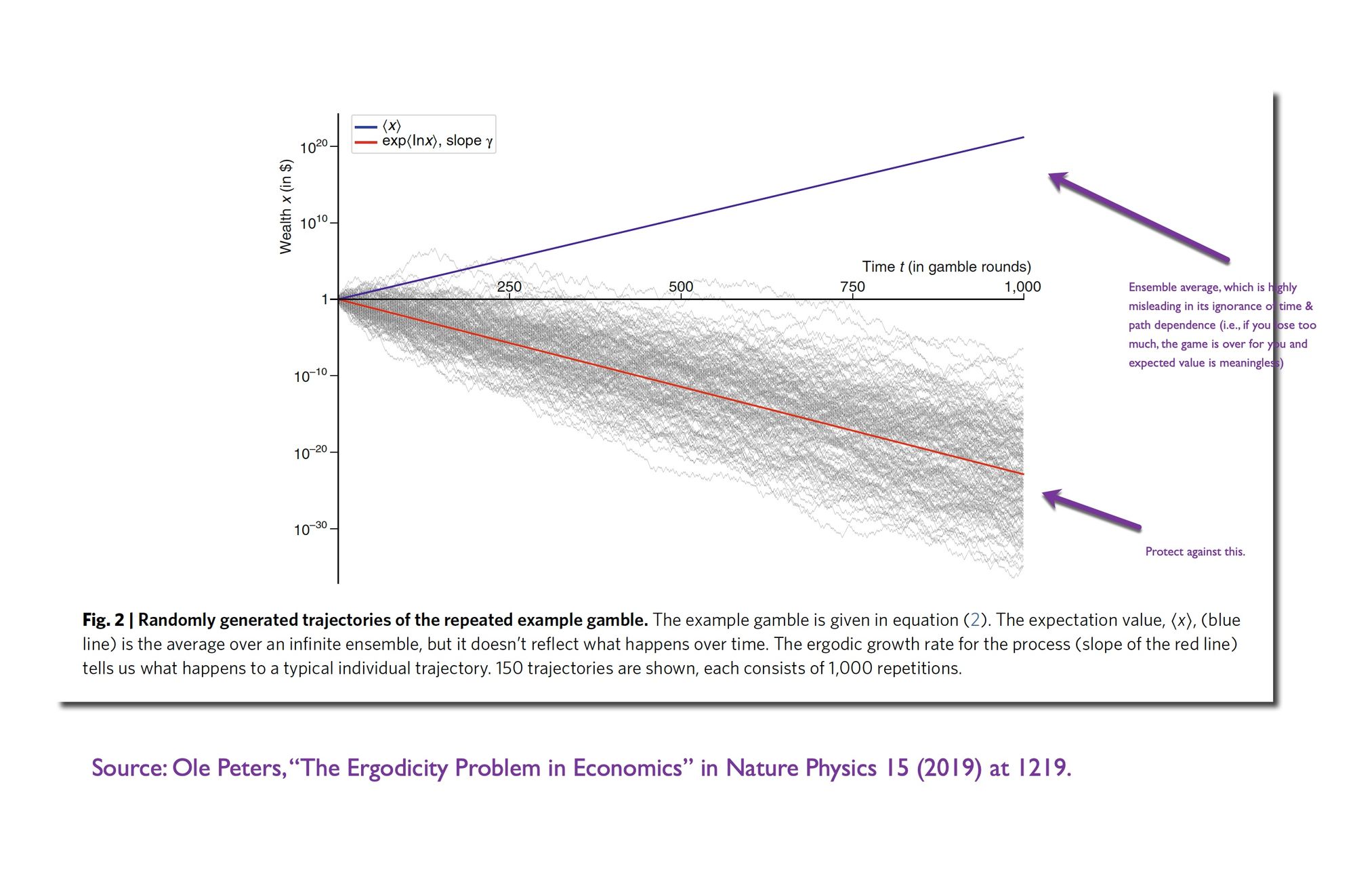 - Ole Peters, "The Ergodicity Problem in Economics" in Nature Physics 15 (2019)