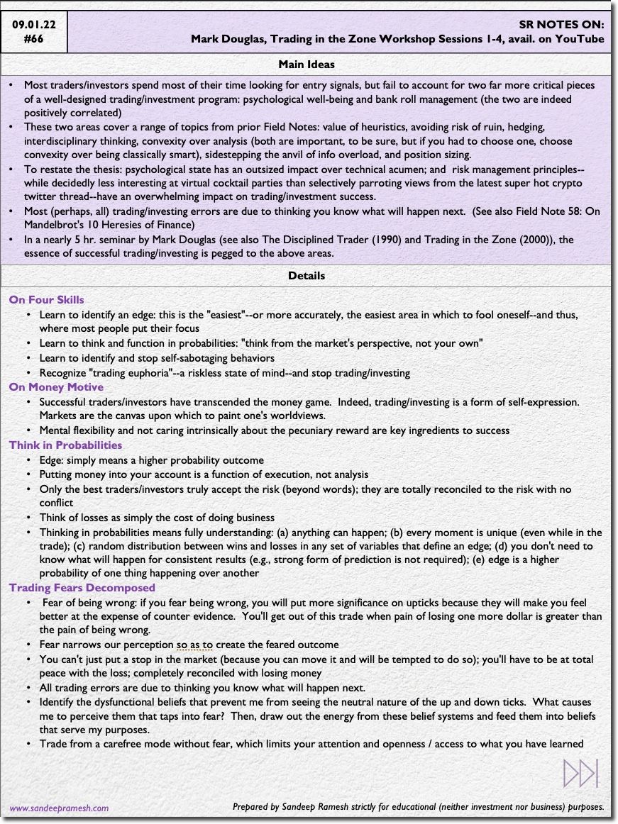 Source: Mark Douglas, Trading in the Zone Workshop Sessions 1-4, avail. on YouTube
