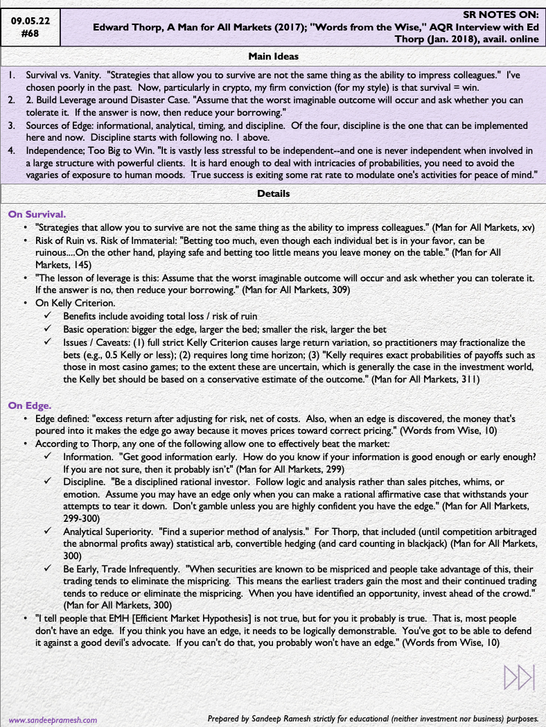 (b) "Words from the Wise," AQR Interview with Ed Thorp (Jan. 2018), avail. online.
