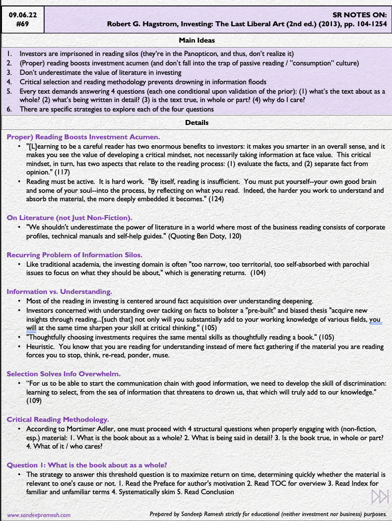 - (Proper) reading boosts investment acumen (+ don’t fall into the trap of passive reading / "consumption" culture)