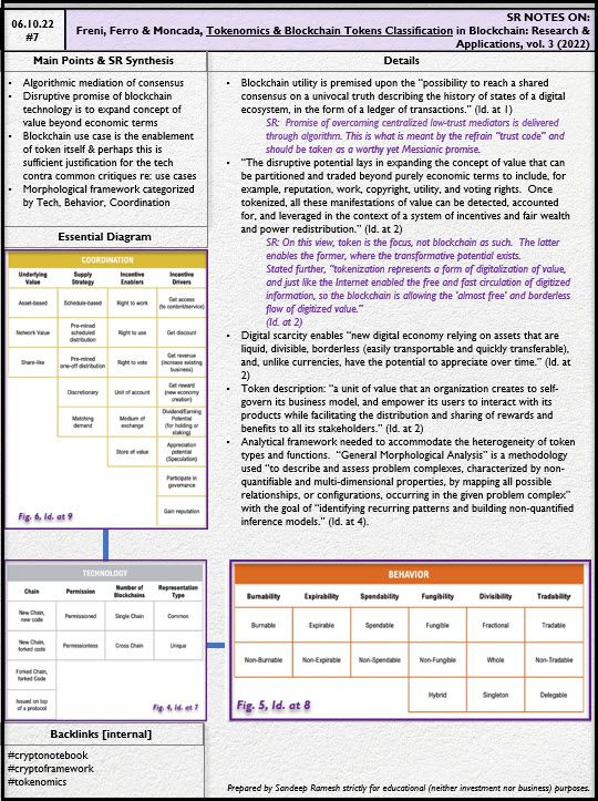 Source: Freni, Ferro & Moncada, Tokenomics & Blockchain Tokens: a Design-Oriented Morphological Framework in Blockchain: Research & Applications, vol. 3 (2022)