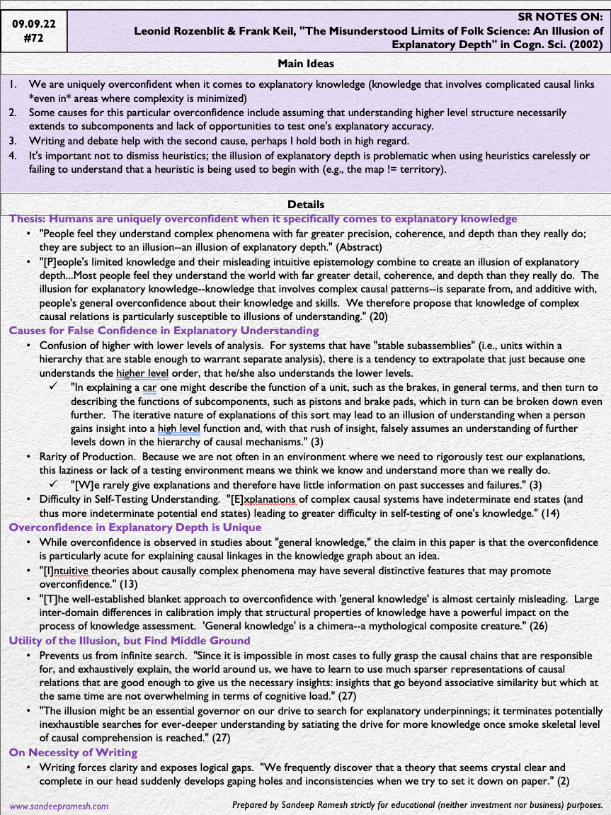 - It's important not to dismiss heuristics; the illusion of explanatory depth is problematic when using heuristics carelessly or failing to understand that a heuristic is being used to begin with (e.g., the map != territory).