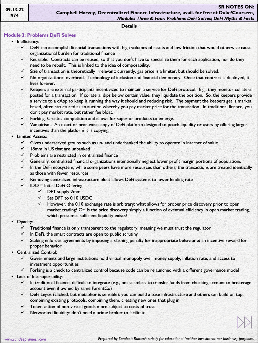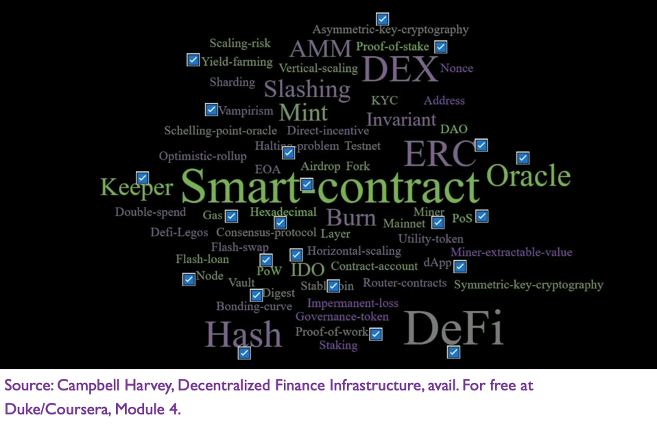 Source: Campbell Harvey, Decentralized Finance Infrastructure, avail. for free at Duke/Coursera, Modules 3 & 4: Problems that DeFi Solves; DeFi Myths & Facts