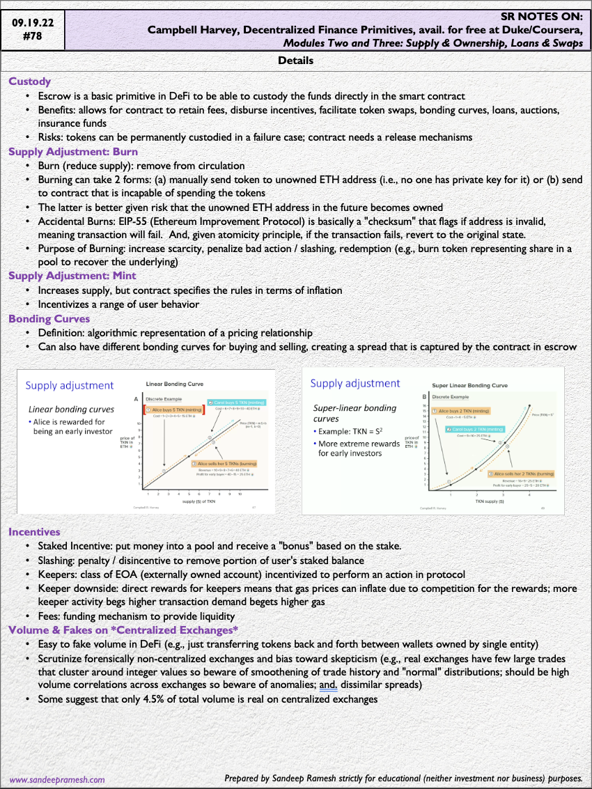 🎶 Companion notes to Modules 2 + 3 of Campbell Harvey's Decentralized Finance Primitives, the second of four courses in the pack.