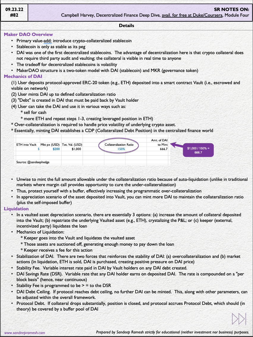 Companion notes on part i. of the third decentralized finance MOOC by Prof. Cam Harvey (via Duke / Coursera), dealing with Credit through a case study of Maker DAO and Dai.