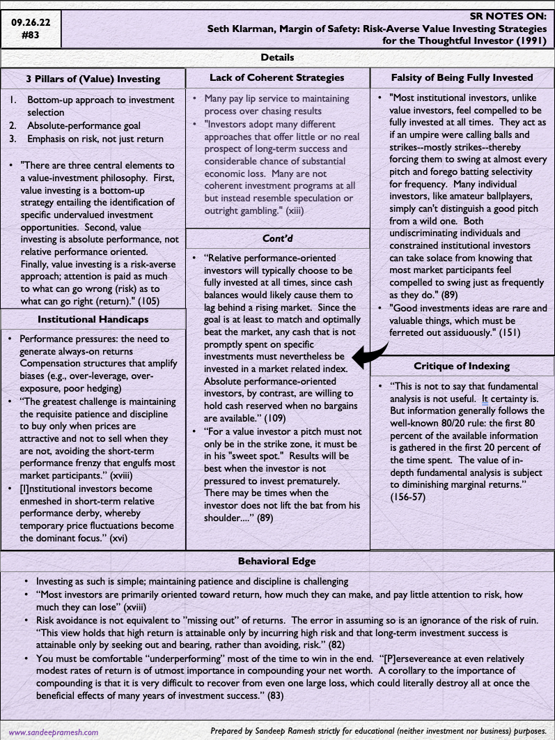 Source: Seth Klarman, Margin of Safety: Risk-Averse Value Investing Strategies for the Thoughtful Investor (1991)
