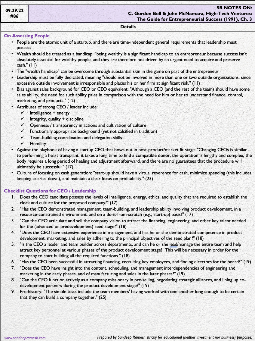 Almost every investor in and around early stage companies highlights "people" as a critical business & investment evaluation criterion. However, few elaborate upon the attributes of leadership success and failure in a "systematic" fashion.
