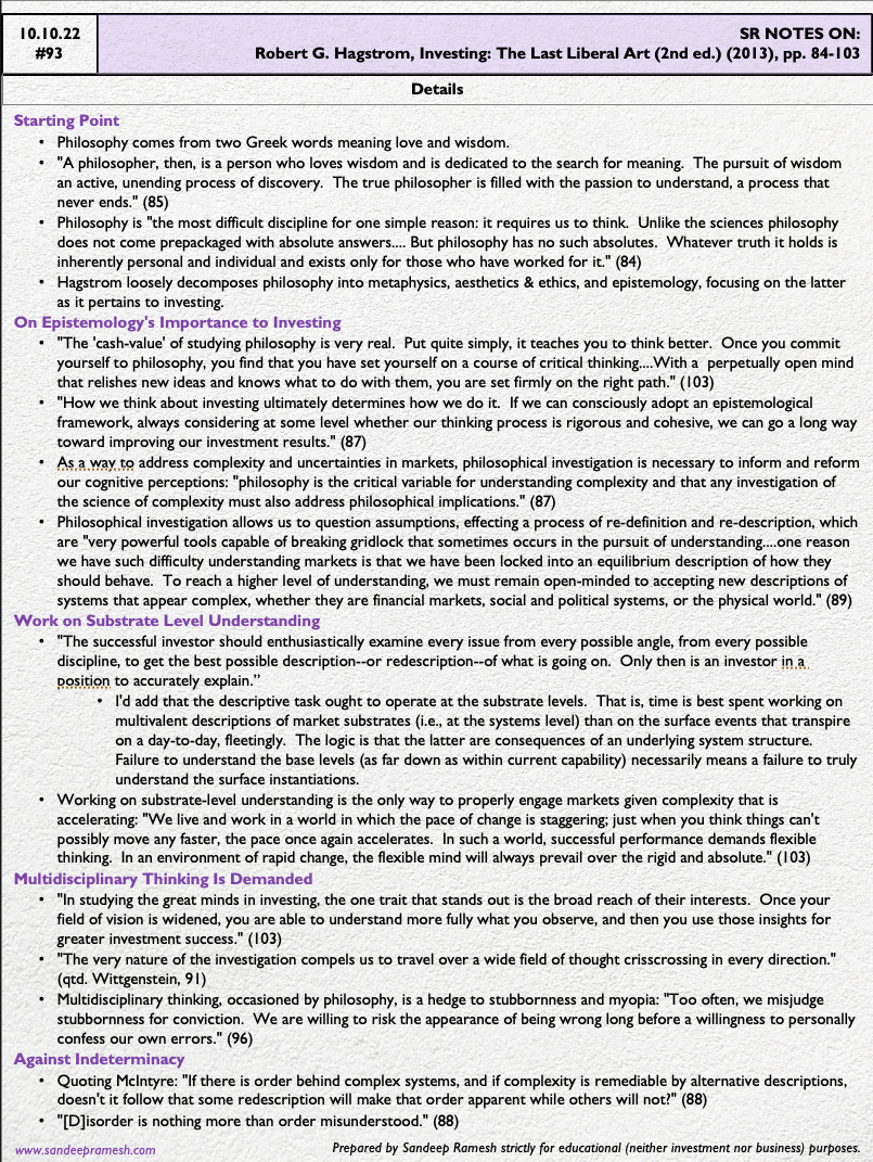 Source: Robert G. Hagstrom, Investing: The Last Liberal Art (2nd ed.) (2013), pp. 84-103